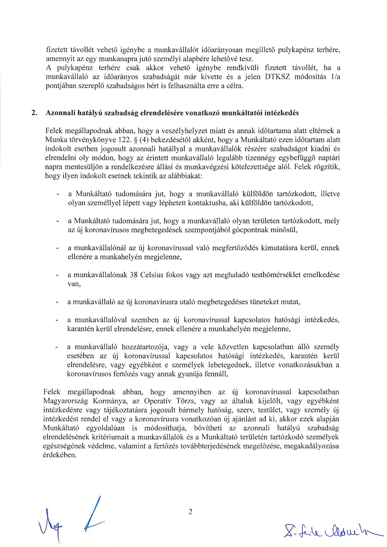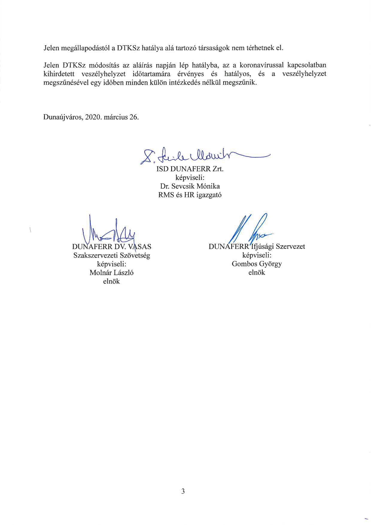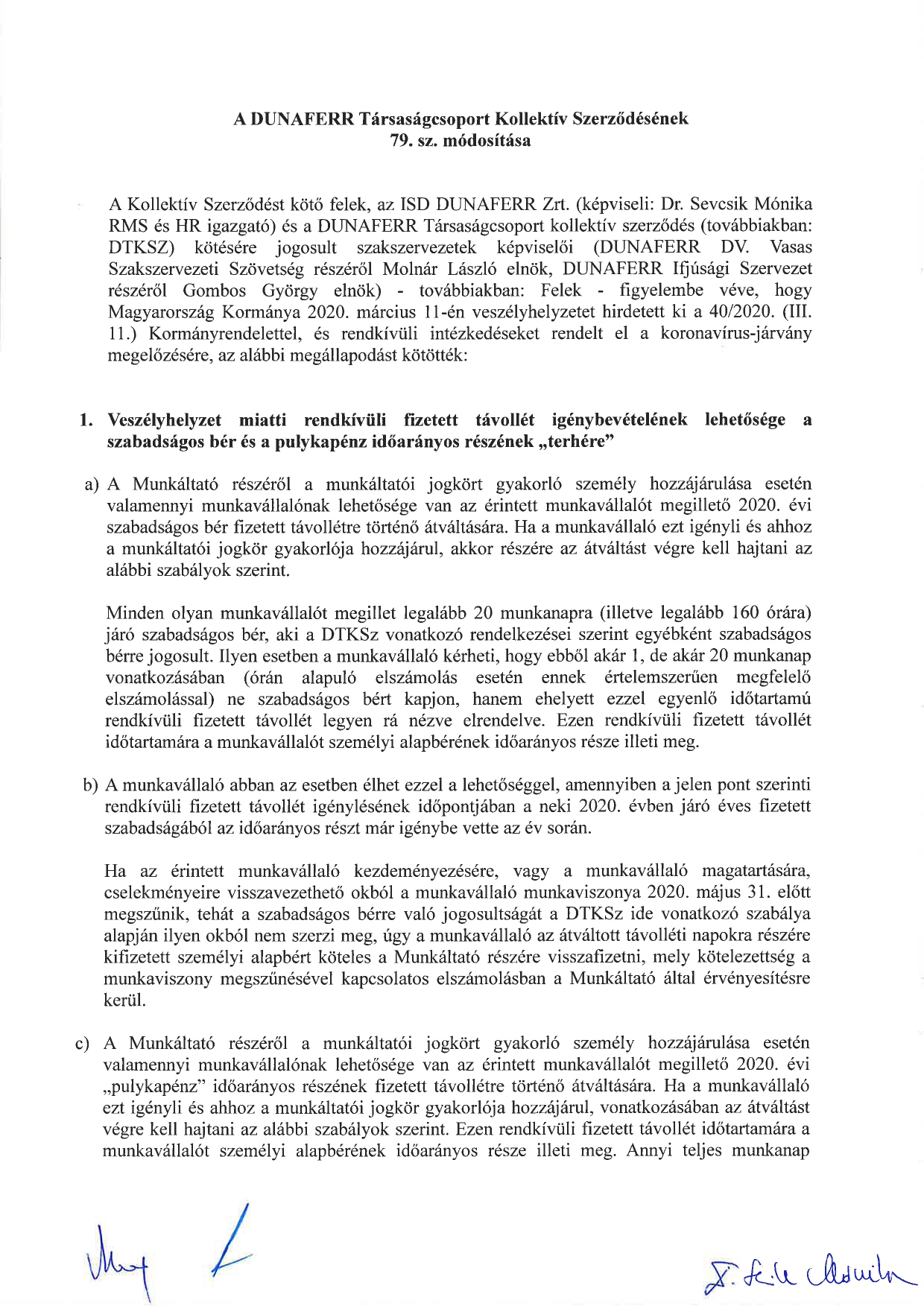 2020. 03. 26-án a Kollektív Szerződést kötő felek aláírták a DTKSz 79. sz. módosítását. A módosítás a koronavírus-járvány megelőzési lehetőségét biztososítja.