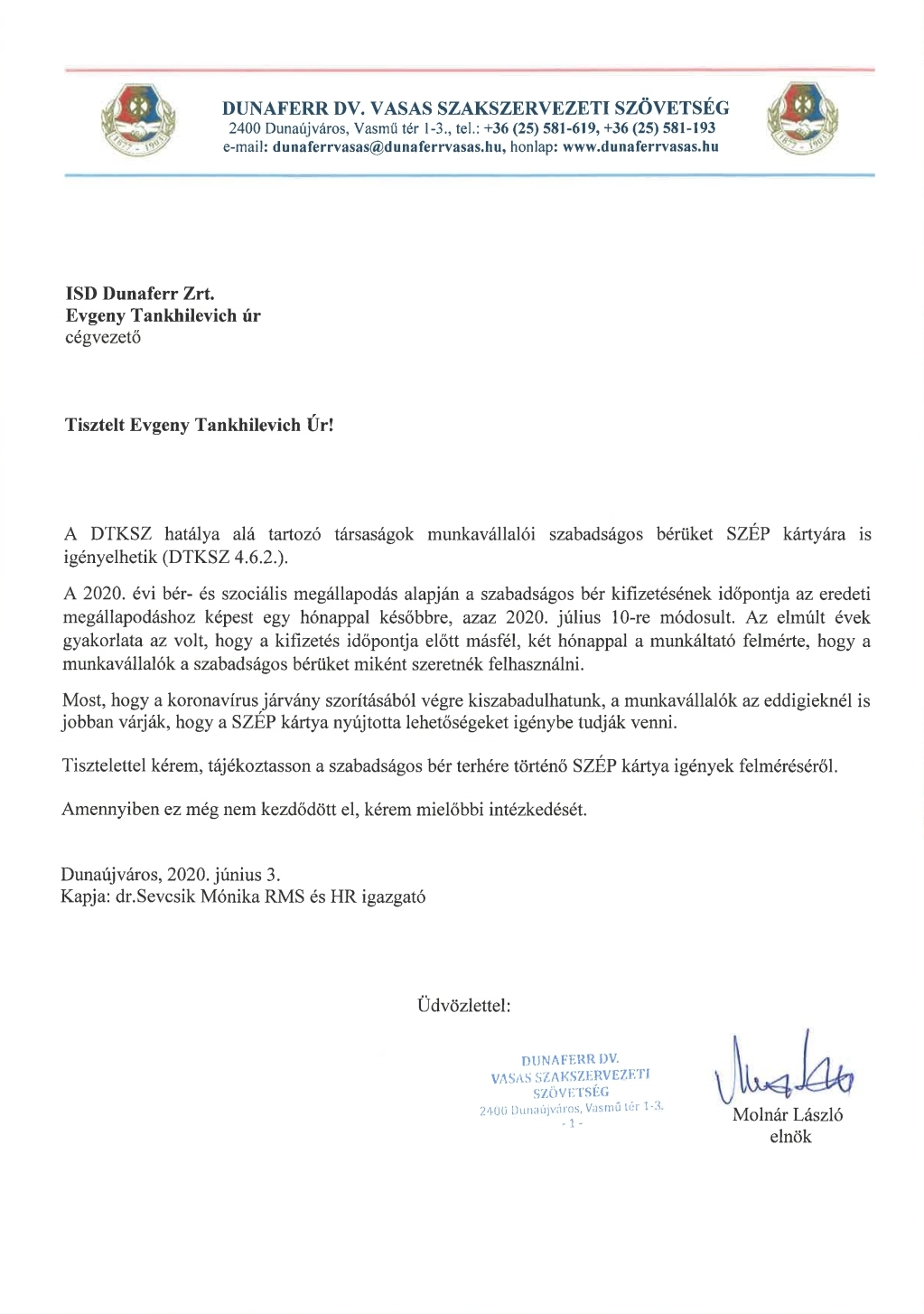 Levél a Cégvezető úrnak Hirek 2020. június 03. A mai napon a Cégvezető úrnak az alábbi levelet adtuk át.