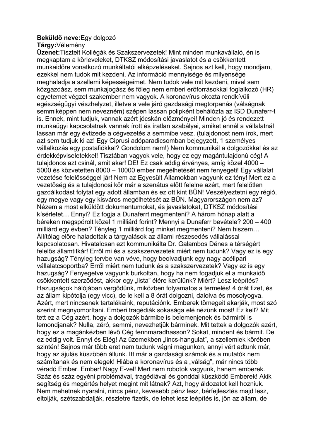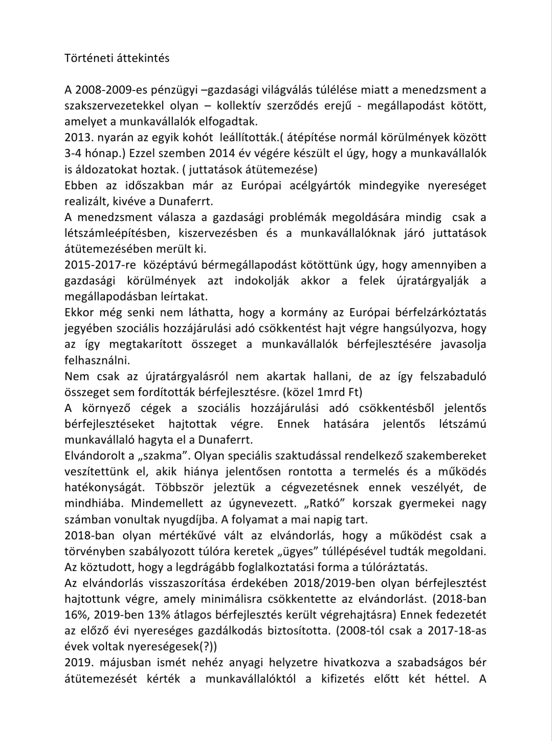 Üdvözlettel: DUNAFERR DV. Vasas Szakszervezeti Szövetség elnöksége
