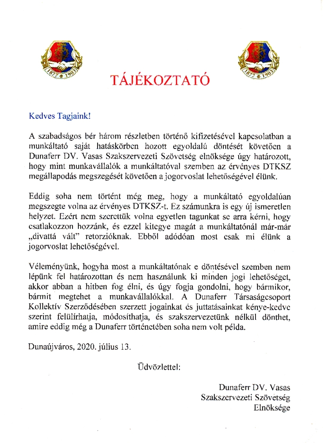 DUNAFERR DV. Vasas Szakszervezeti Szövetség