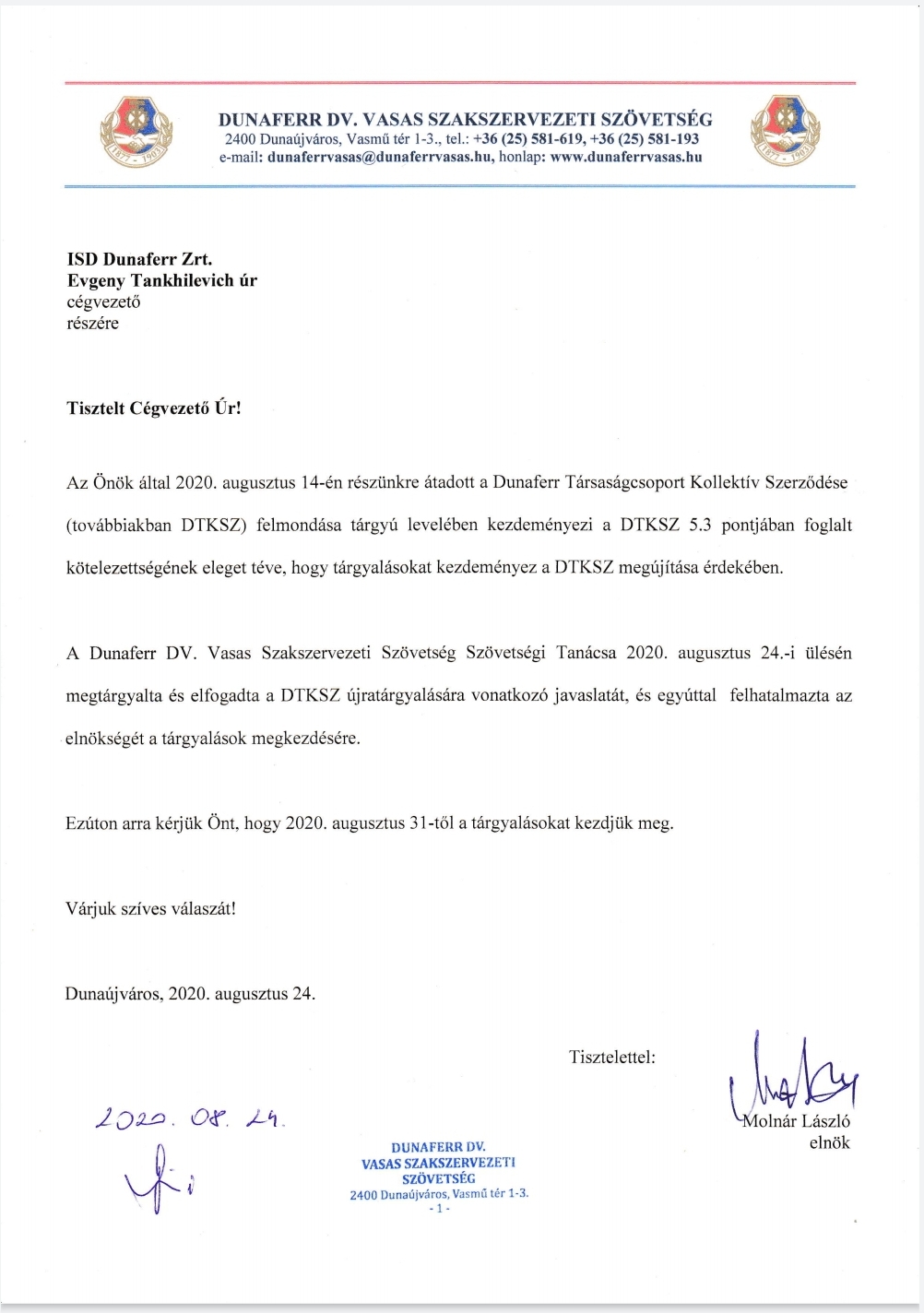 Cégvezetőnek írt levél - KSZ. Hirek 2020. augusztus 24. Kedves Tagjaink! A mai napon az alábbi levelet adtuk át a cégvezető úrnak!
