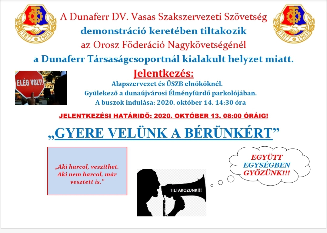 Üdvözlettel: Dunaferr DV. Vasas Szakszervezeti Szövetség