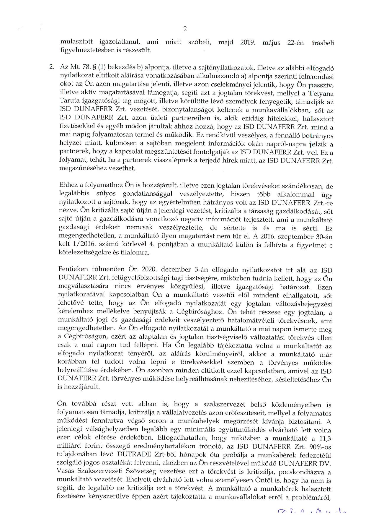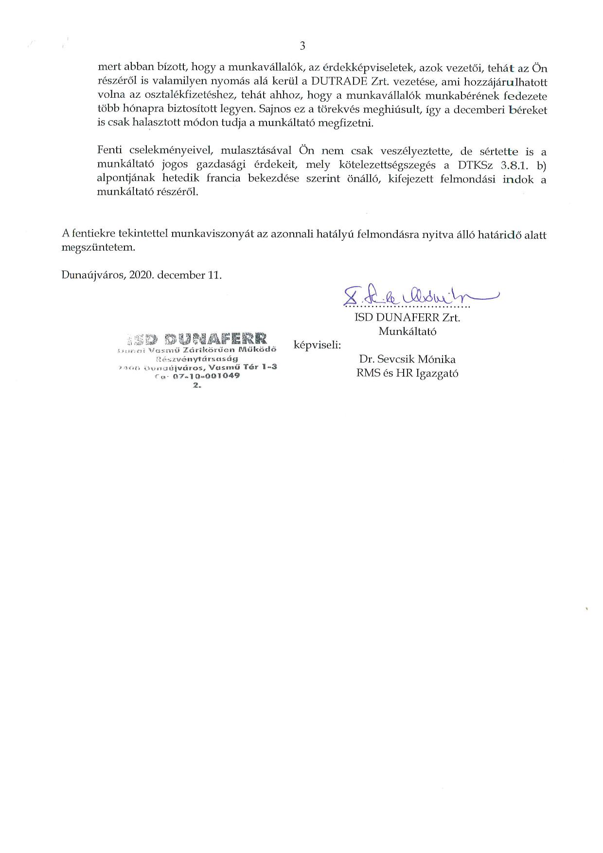 A felmondásban szereplő további, megkérdőjelezhető indokoknak a megítélését rátok, majd a bíróságra bízzuk. Egy biztos! Ilyen körülmények között érdekvédelmi munkát végezni, szinte lehetetlen! De nem adjuk fel!