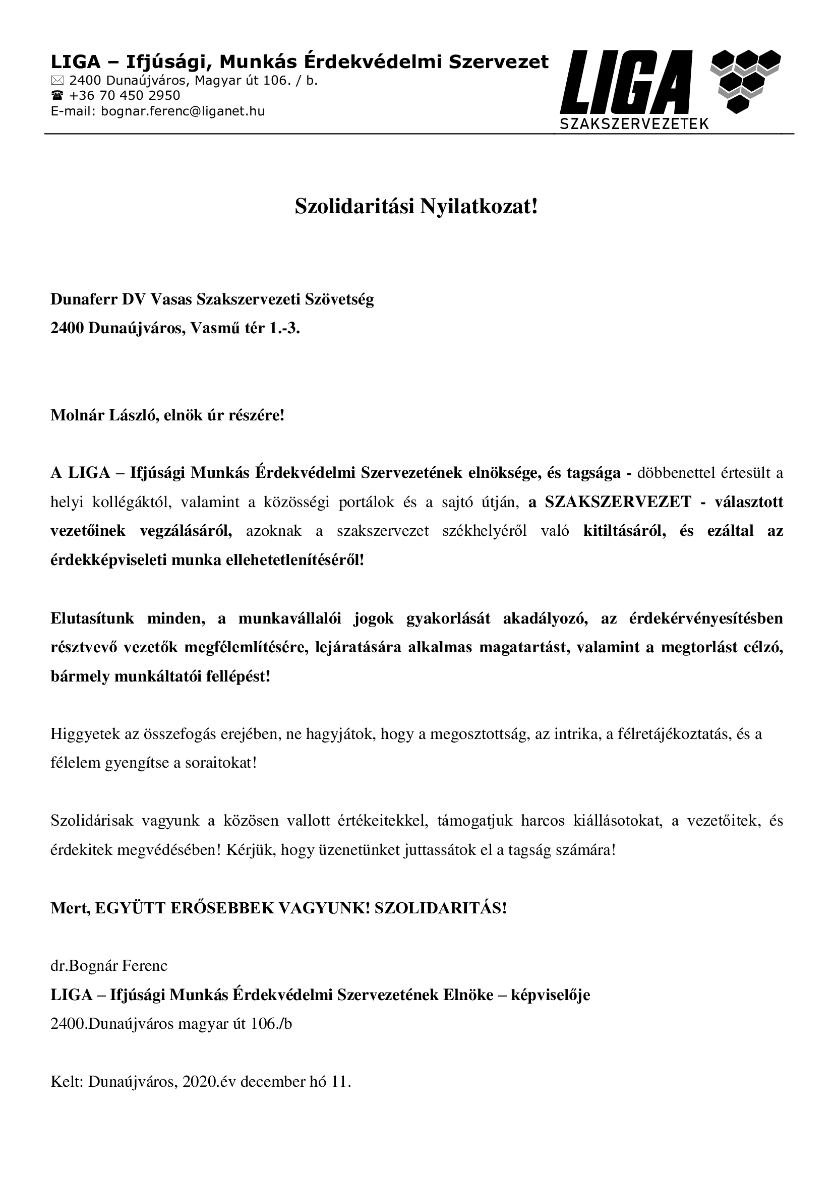 DUNAFERR DV. Vasas Szakszervezeti Szövetség