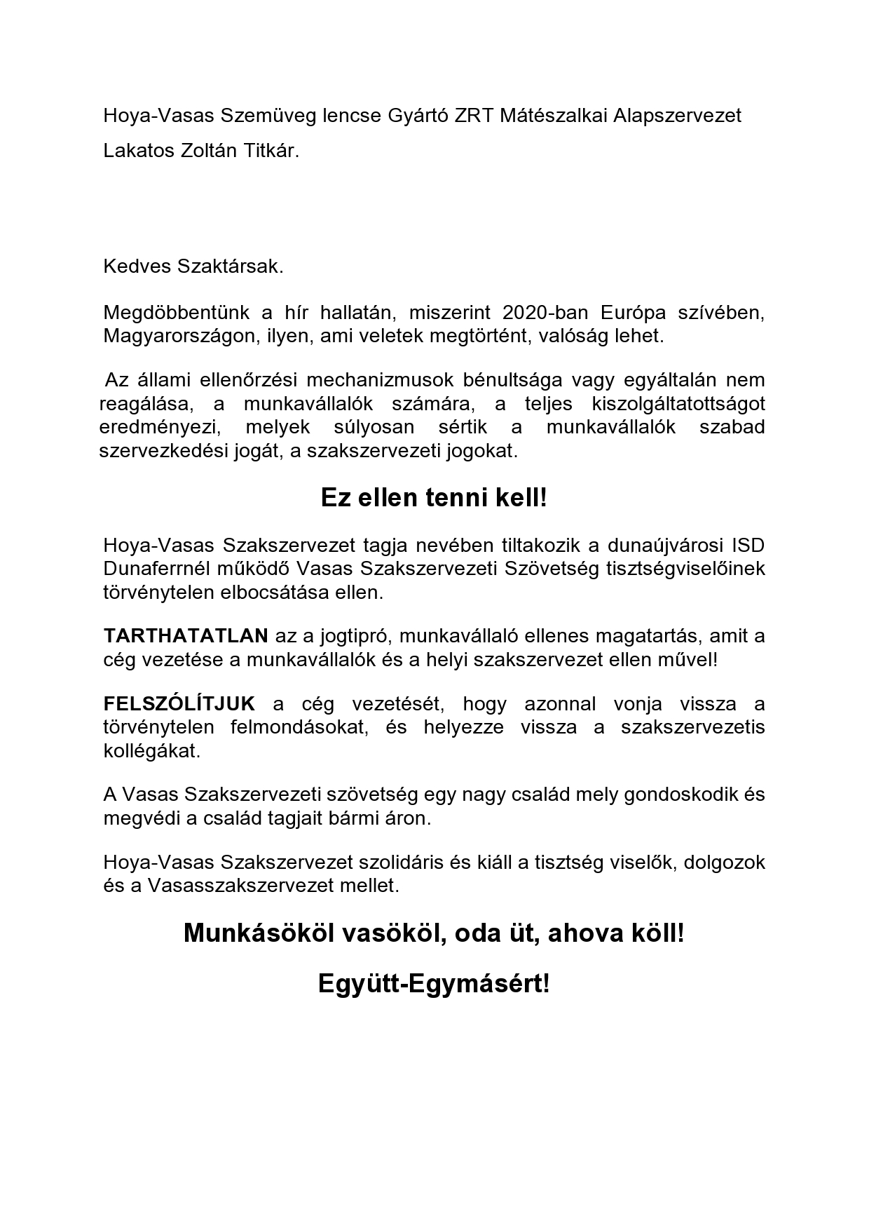 DUNAFERR DV. Vasas Szakszervezeti Szövetség