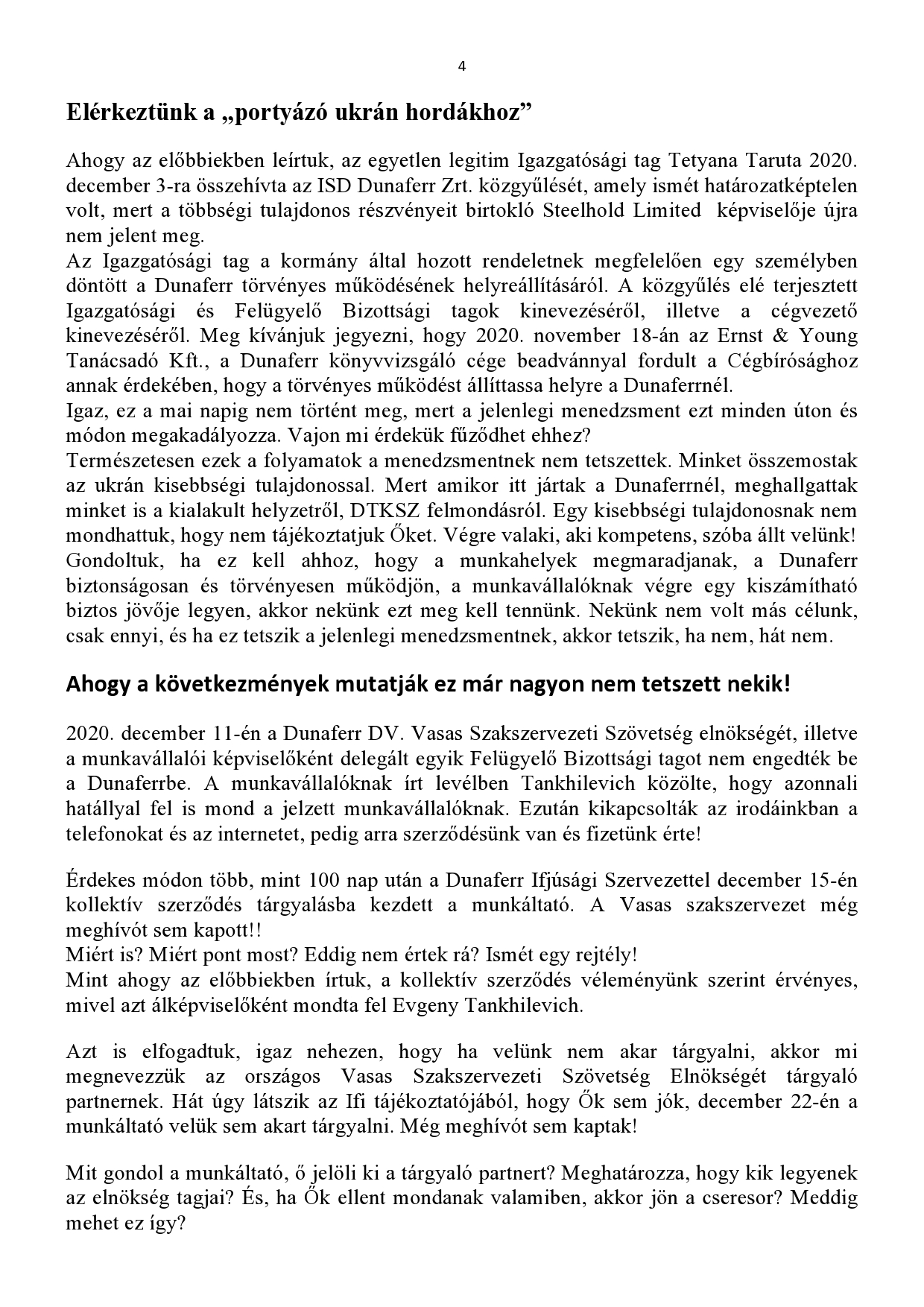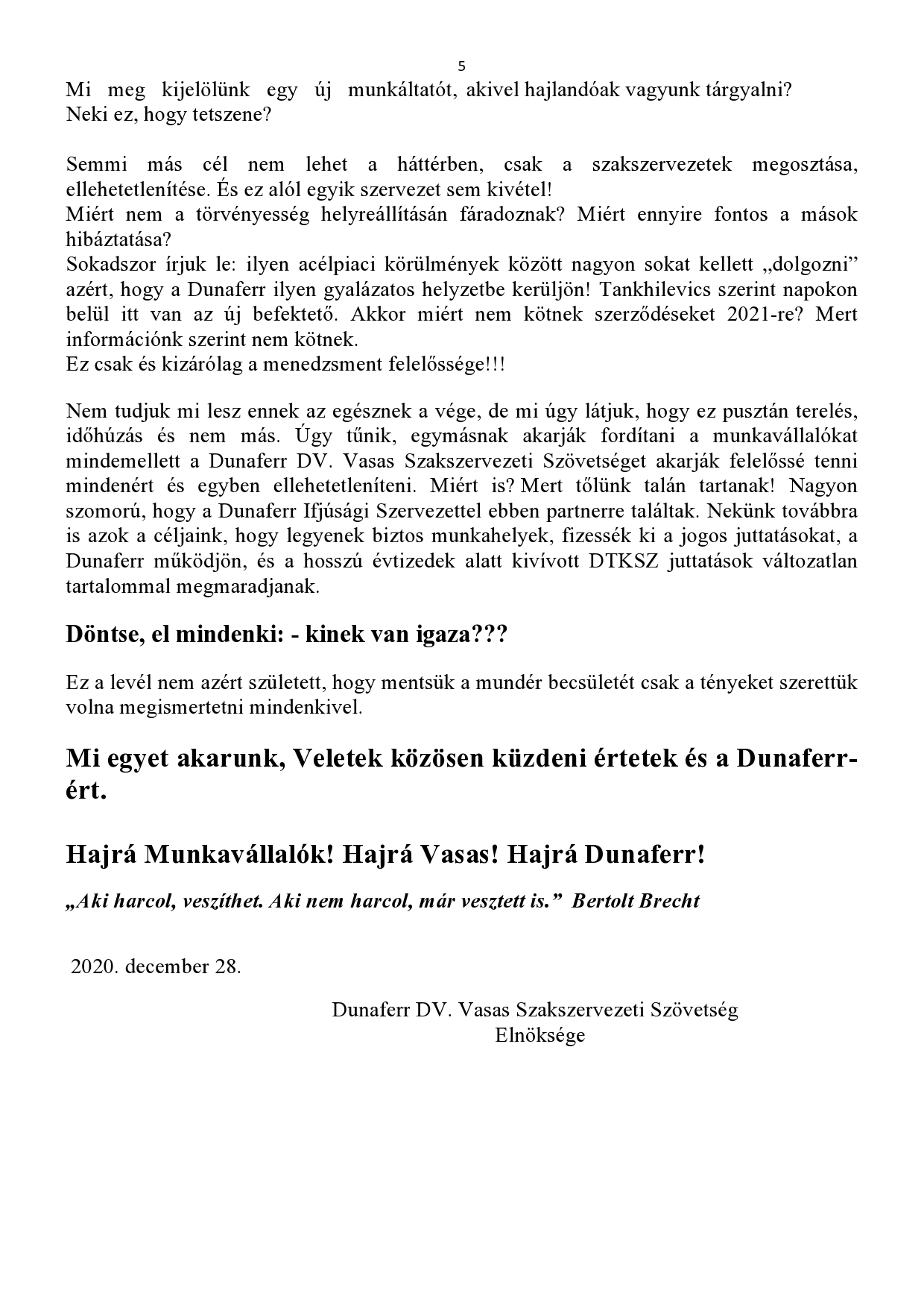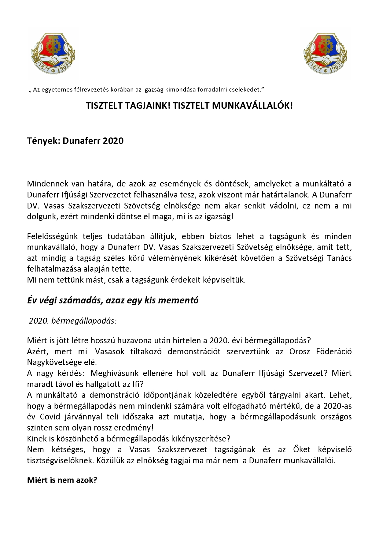 DUNAFERR DV. Vasas Szakszervezeti Szövetség