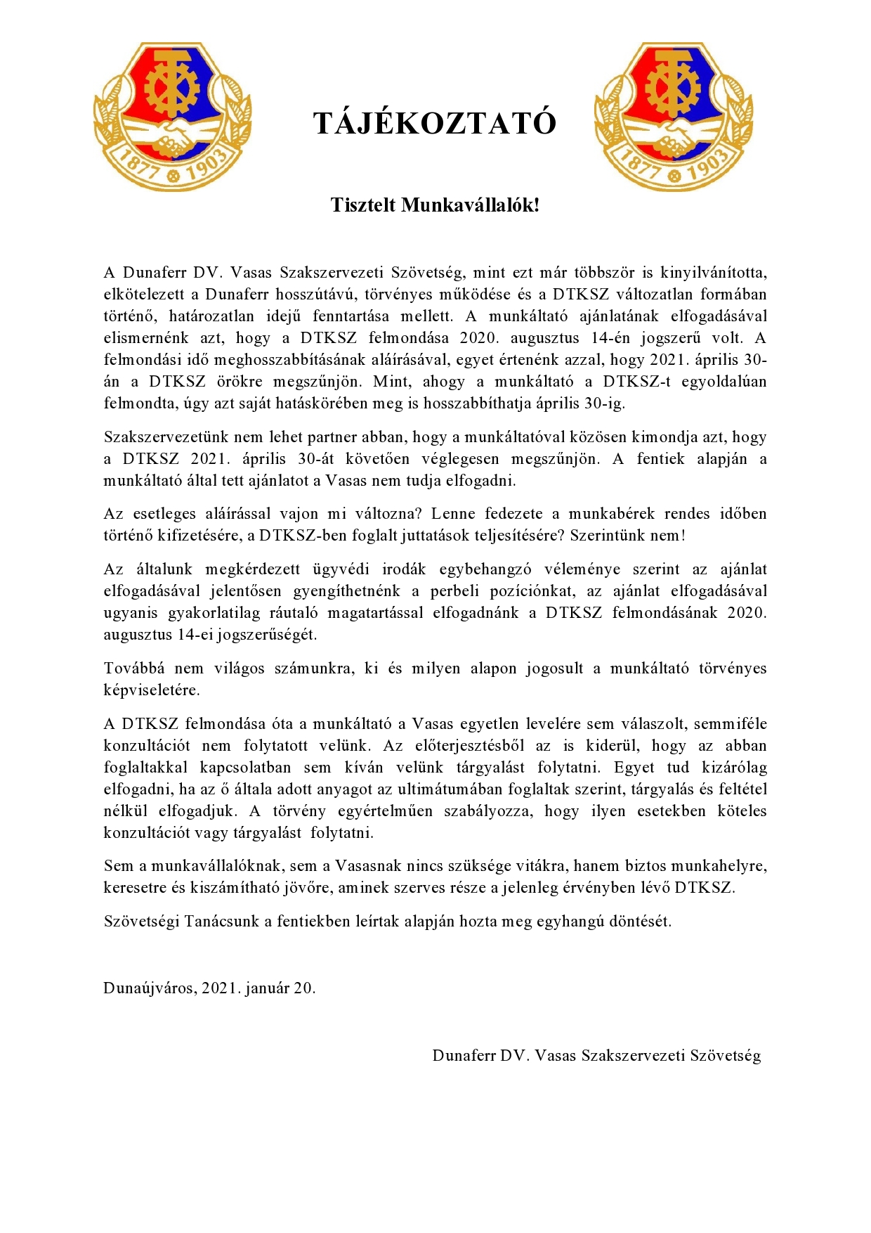 DUNAFERR DV. Vasas Szakszervezeti Szövetség