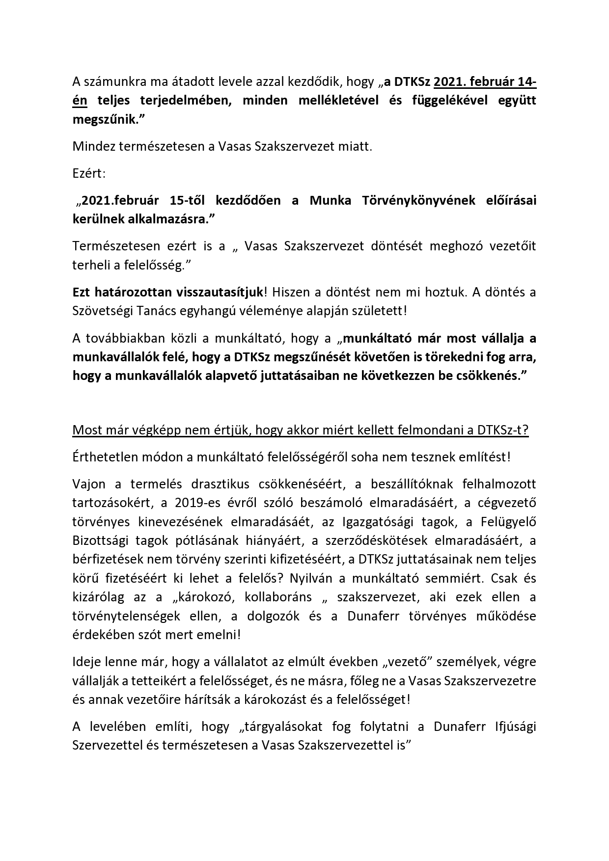 DUNAFERR DV. Vasas Szakszervezeti Szövetség